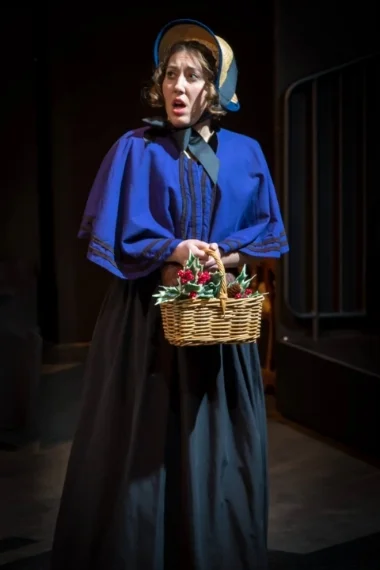 But the company pulls it off, with a couple of vaudevillian set pieces and a little help from the crowd. At stage right, a mother (Shayna Bredbeck) cradles her young daughter on a stormy night and begins to tell her a tale that’s “true and make-believe all at once.” In her story, there’s a young girl living in the miserable town — “Never have I been to such an unhappy place,” Pezzo exclaims — who sees a glimmer of hope in the visiting peddler and the colorful things he brings. By the end of the show, it’s clear the mother hasn’t just plucked her story out of thin air.