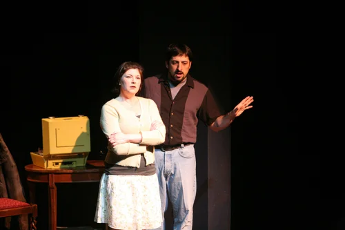 Seated on the stage’s left side, narrator Shayna Bredbeck portrayed a mother, who amused and distracted her frightened daughter, Eva (Gabriela Ettinger), during a thunderstorm, by telling her the legendary tale of a dedicated cap peddler.